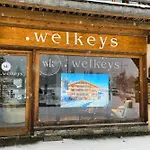 Το Appartement La Musardiere - Welkeys Megève 45 τ.μ. Διαθέτει βεράντα που βλέπει στην πόλη.